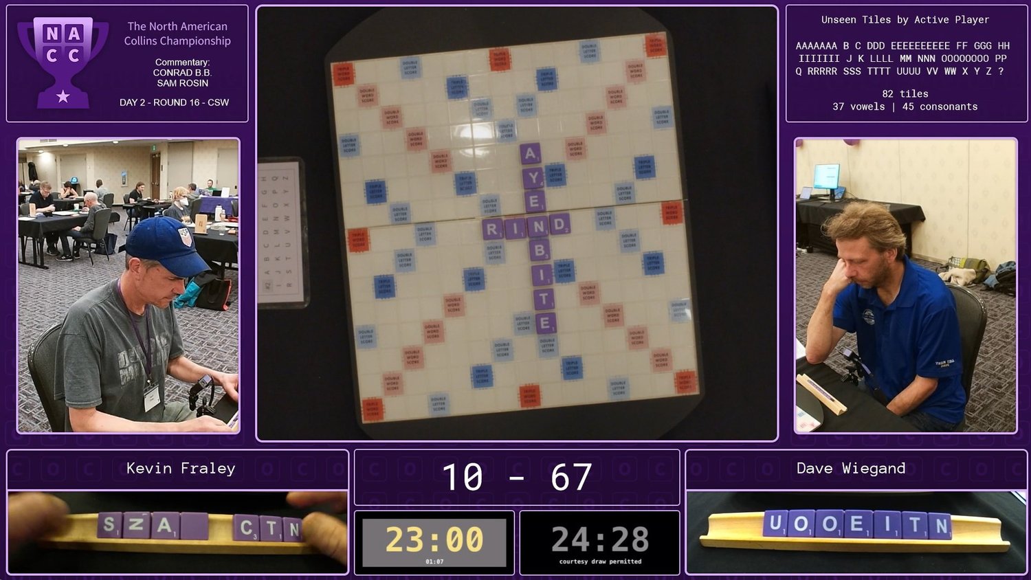 There was a lot of Dr. Bing today at the top table, and perhaps his most exciting game was his matchup with Chris Grubb in round 14. Chris got out to a big lead early on, but Dave came charging back in impressive fashion, leading to a close endgame that I won't spoil here. Take a look for yourself.