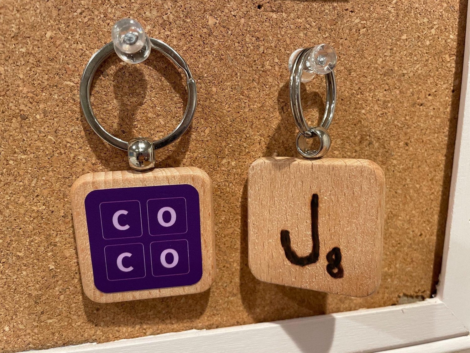 Carry your CoCo Scrabble joy with you each day with this handy keychain. These solid wood keychains feature the CoCo logo on one side and a hand-engraved initial of your choice on the other.