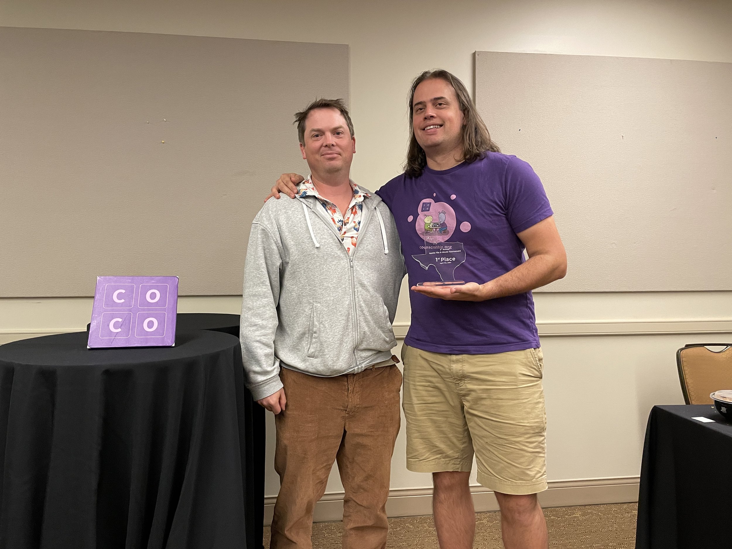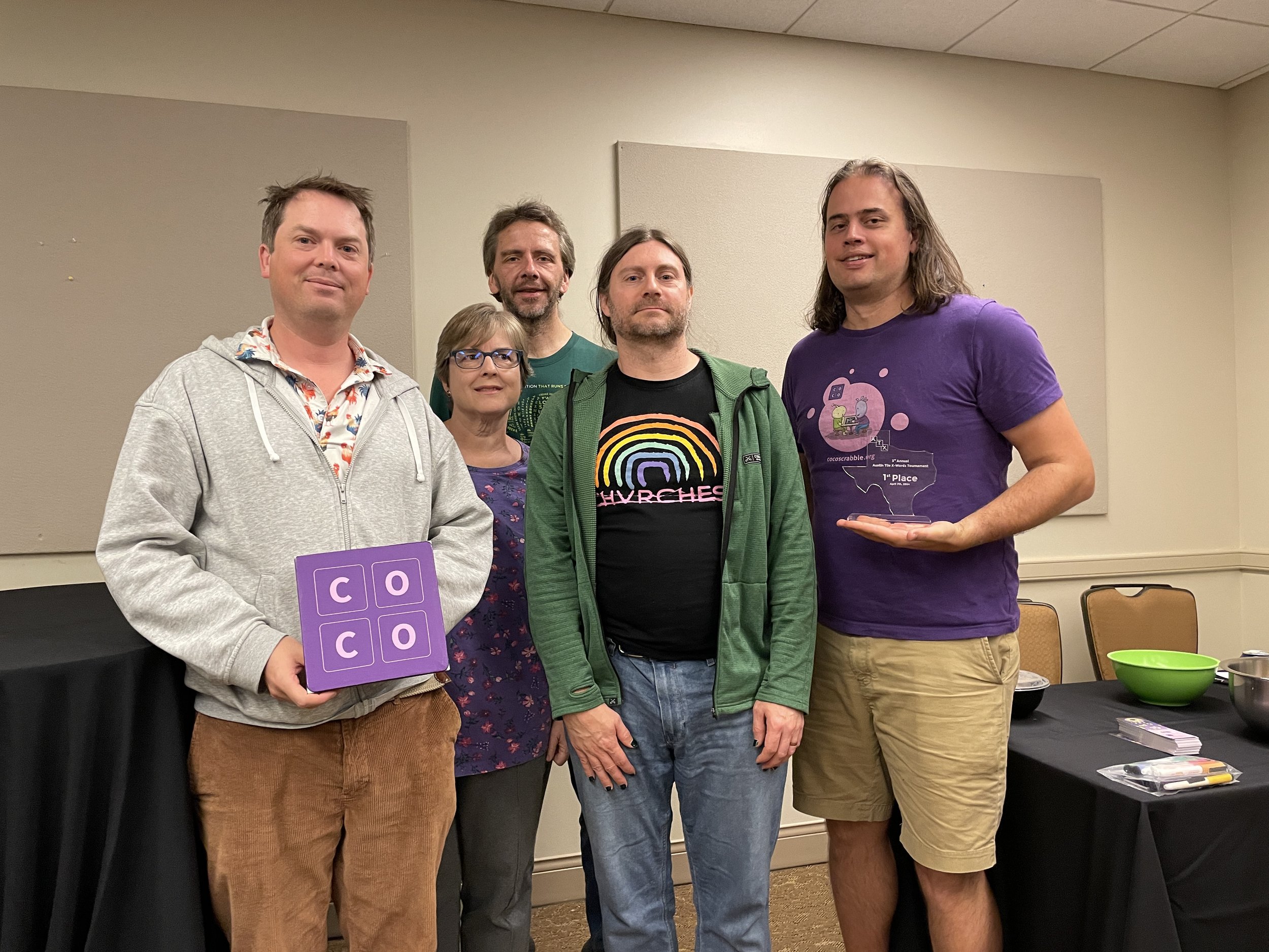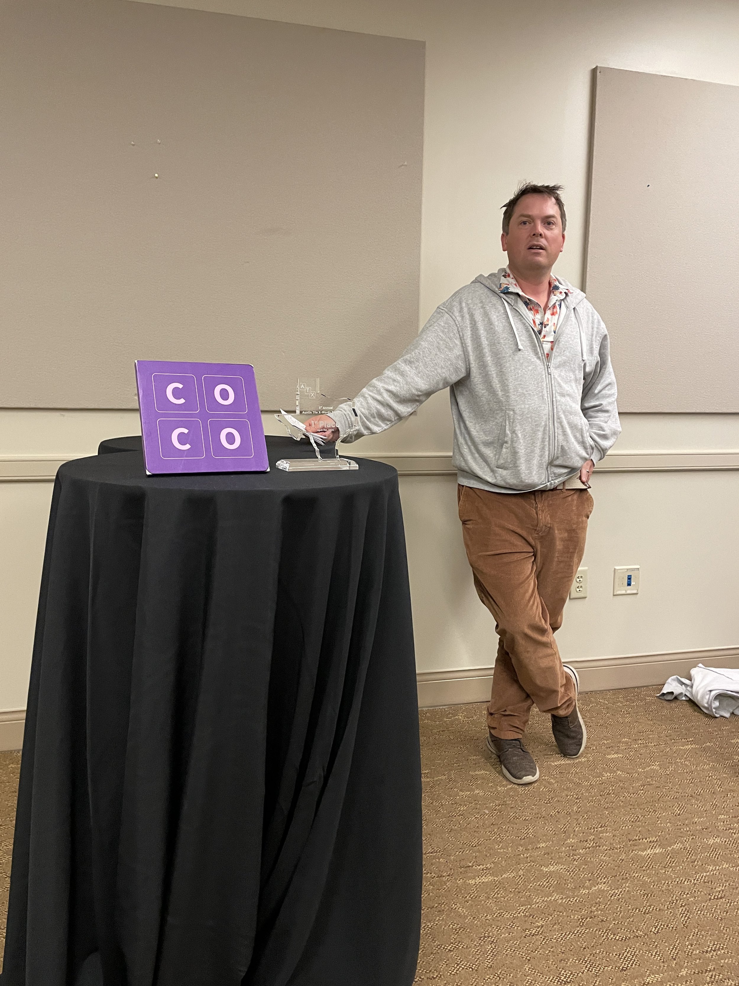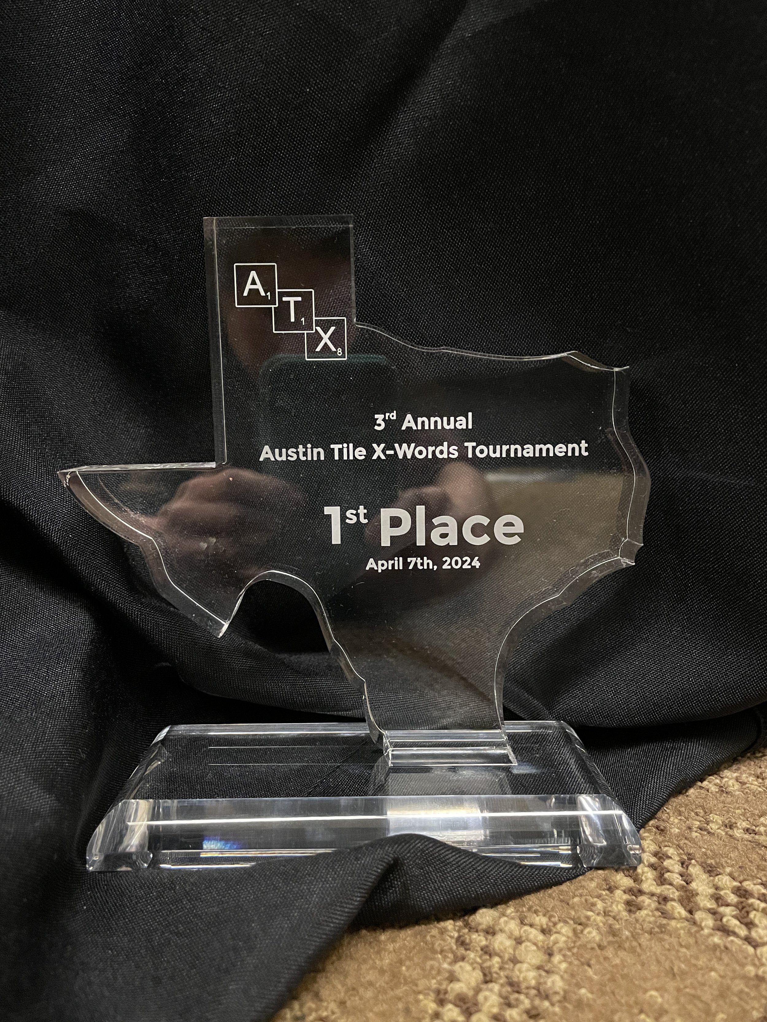 “Congratulations to Austin local Jesse Day for winning the third annual Austin Tile X-Words! Kudos to all our other winners for their strong performances. Thanks to everyone who played the tournament, especially newcomers Courtney Paley and Tony Boyle. We hope everyone enjoyed the eclipse, too. See you next year!”