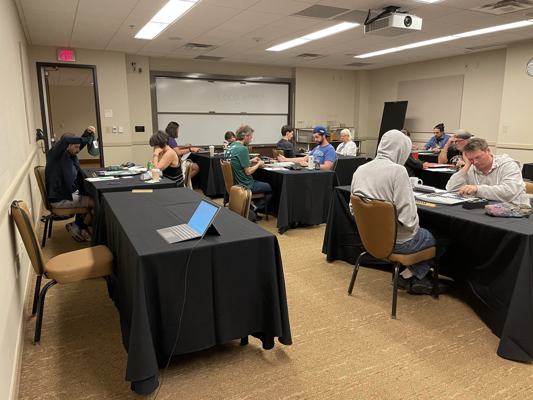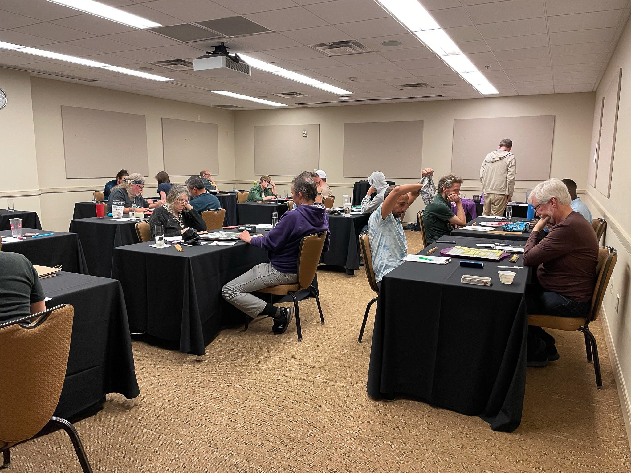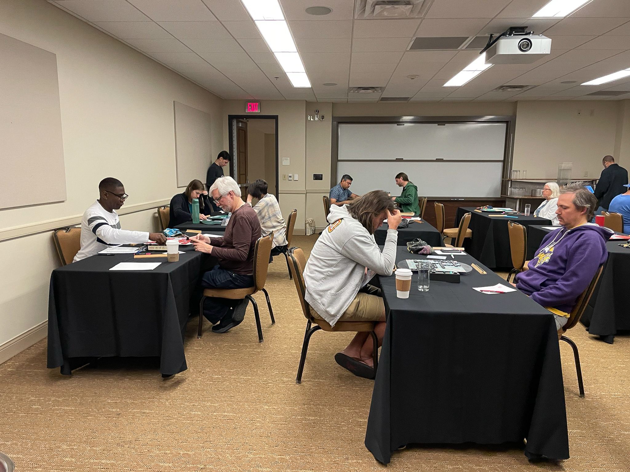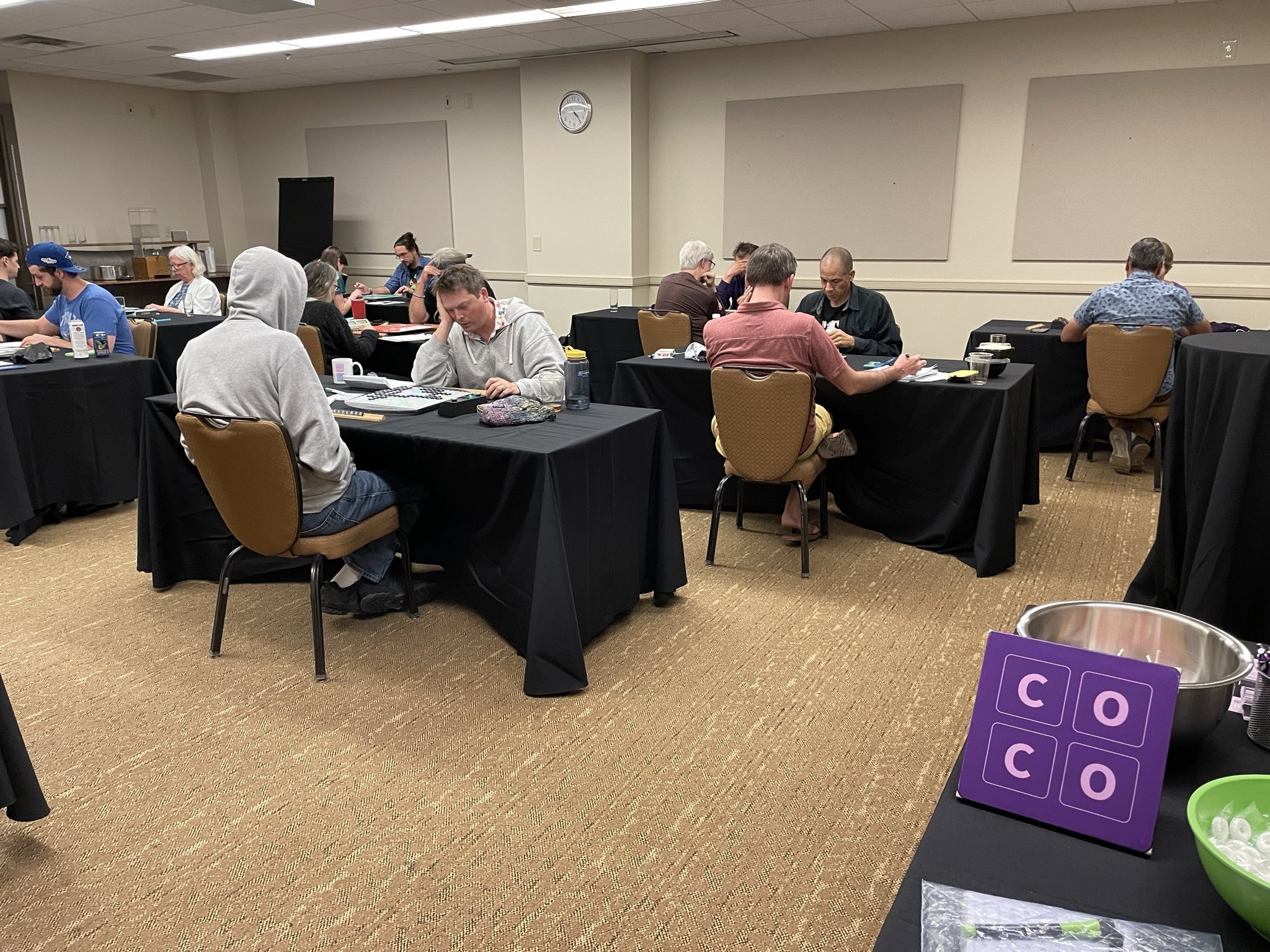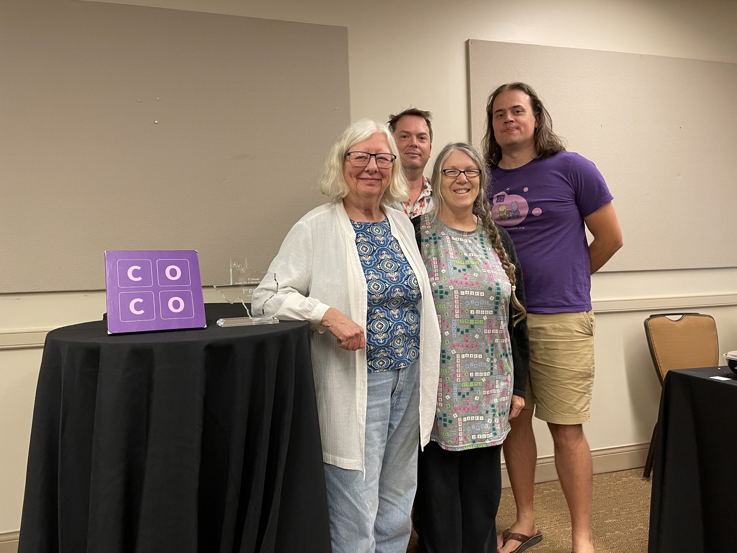“Congratulations to Austin local Jesse Day for winning the third annual Austin Tile X-Words! Kudos to all our other winners for their strong performances. Thanks to everyone who played the tournament, especially newcomers Courtney Paley and Tony Boyle. We hope everyone enjoyed the eclipse, too. See you next year!”
