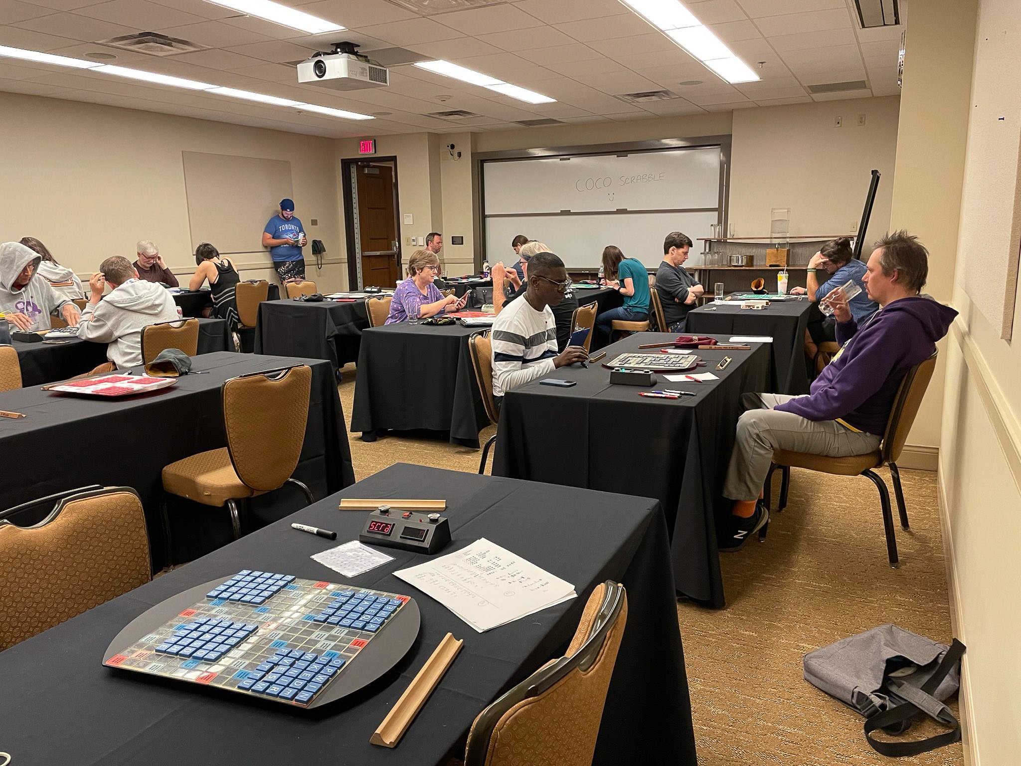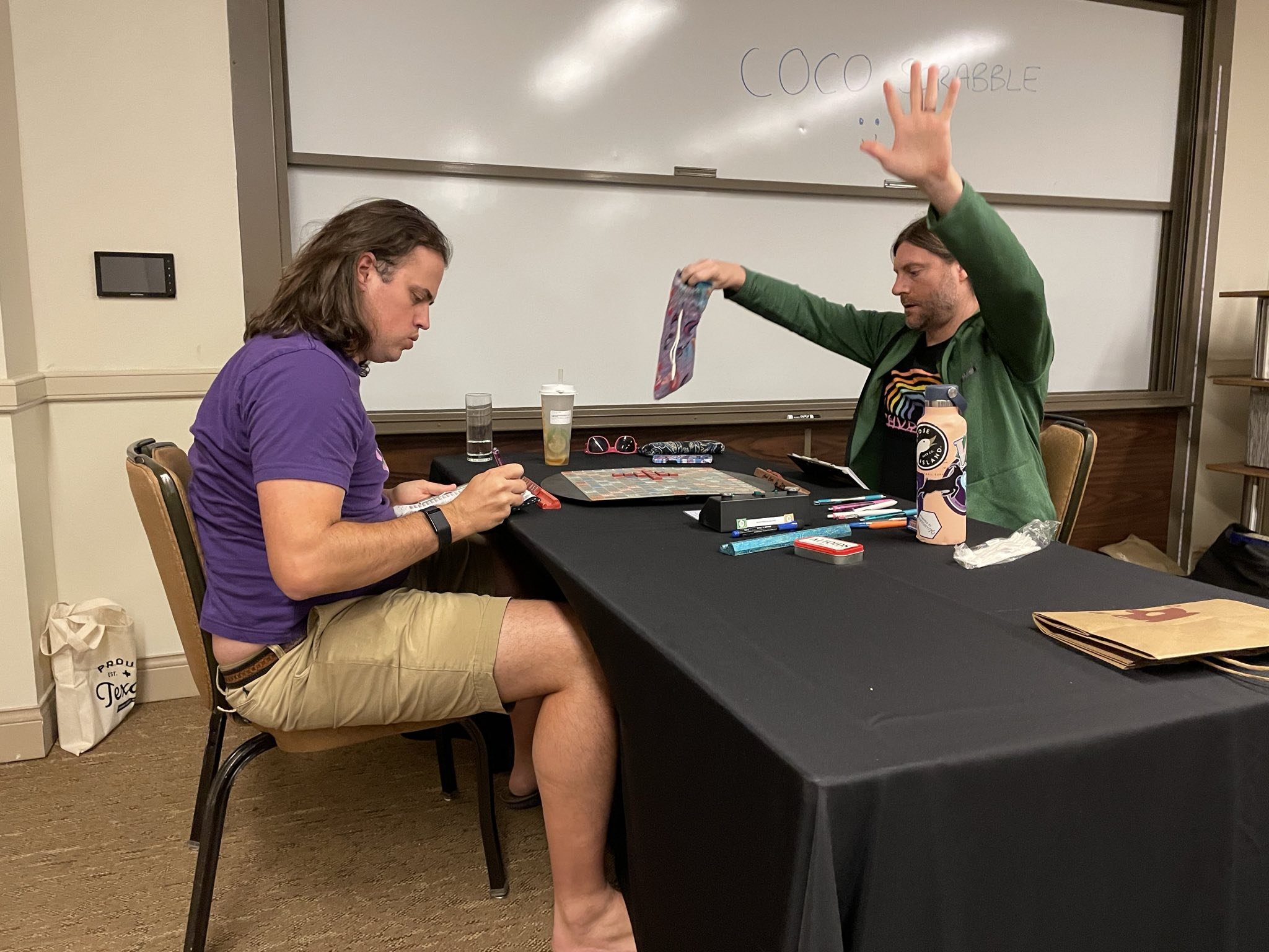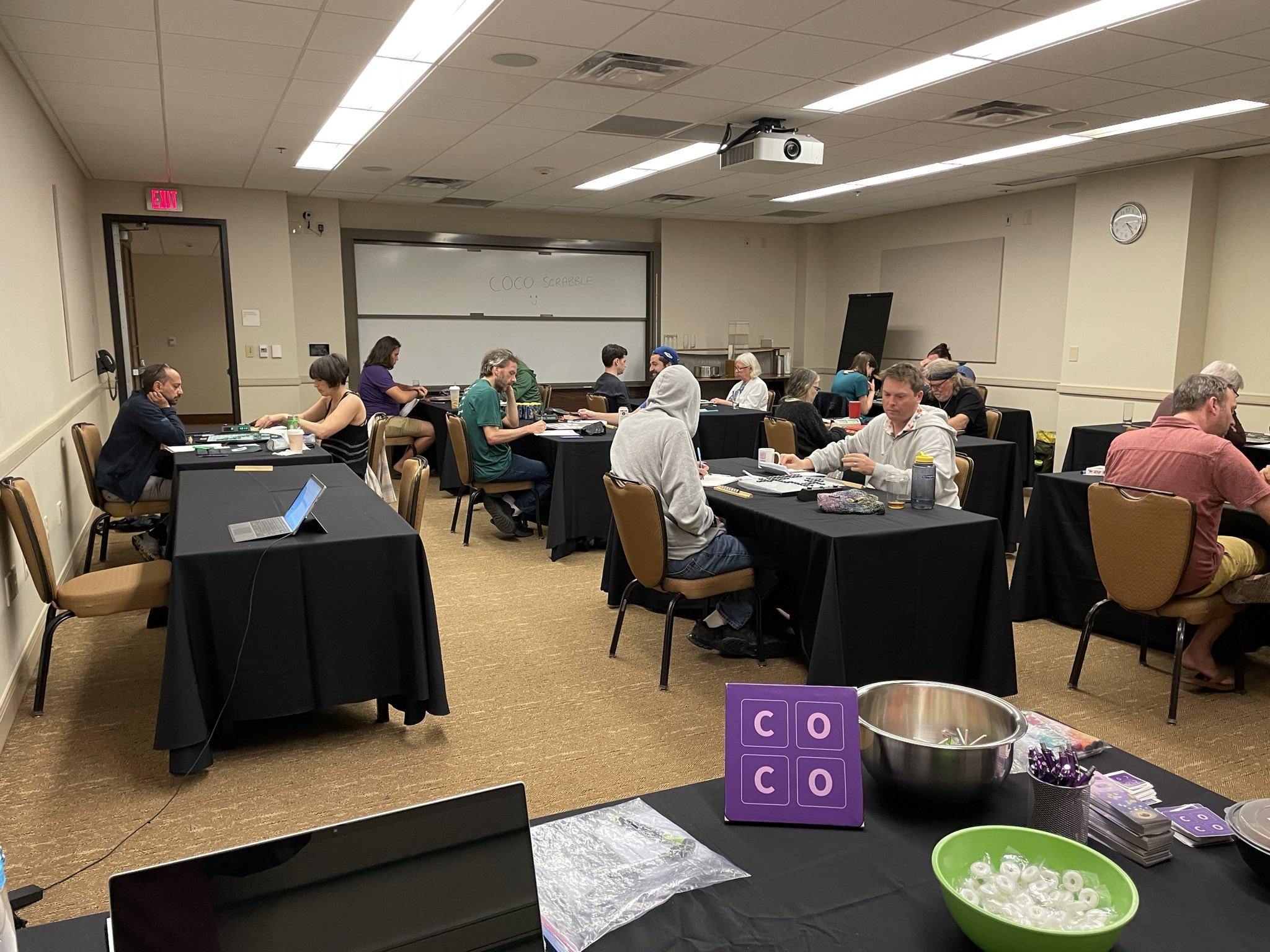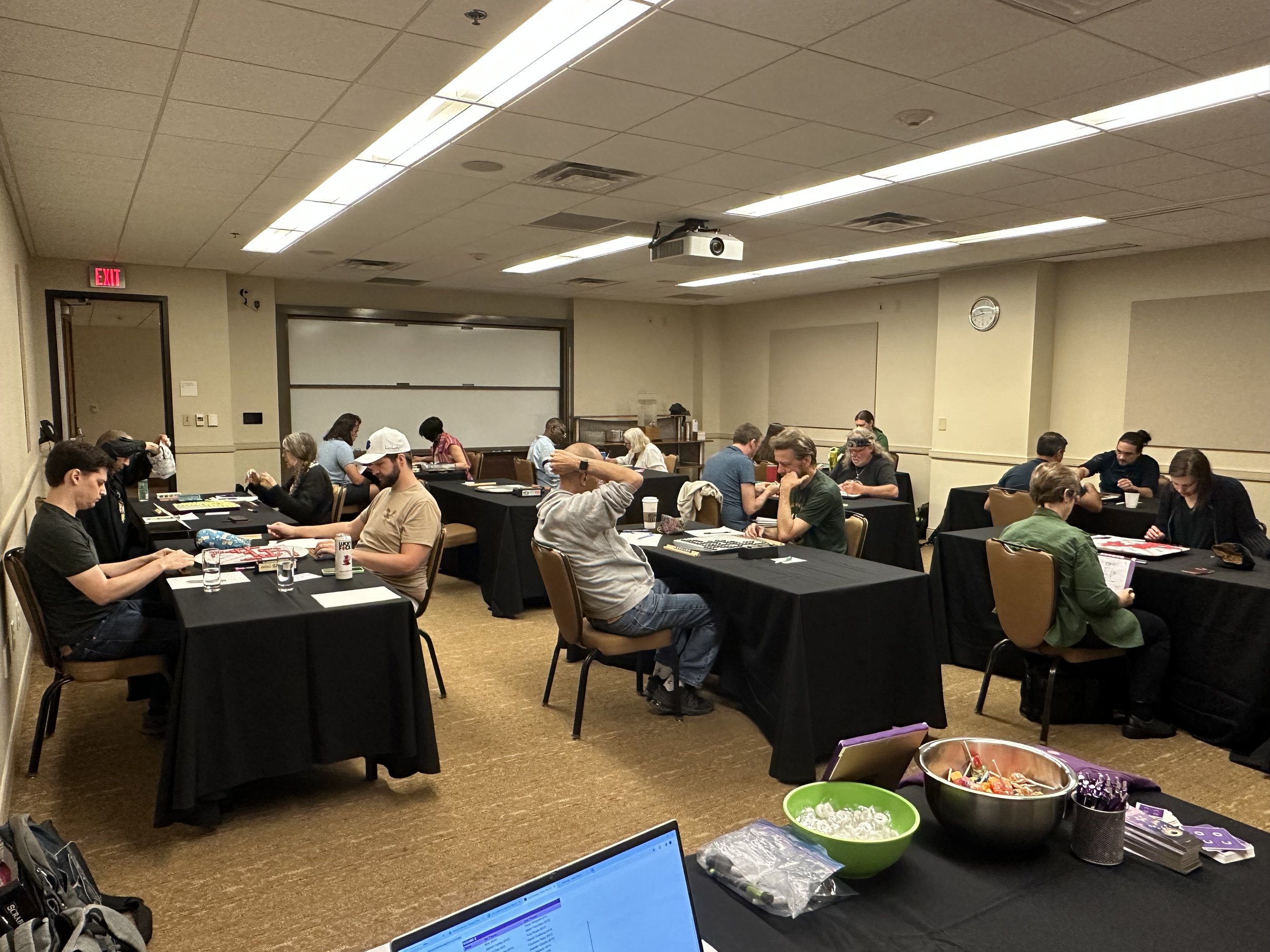 “Congratulations to Austin local Jesse Day for winning the third annual Austin Tile X-Words! Kudos to all our other winners for their strong performances. Thanks to everyone who played the tournament, especially newcomers Courtney Paley and Tony Boyle. We hope everyone enjoyed the eclipse, too. See you next year!”