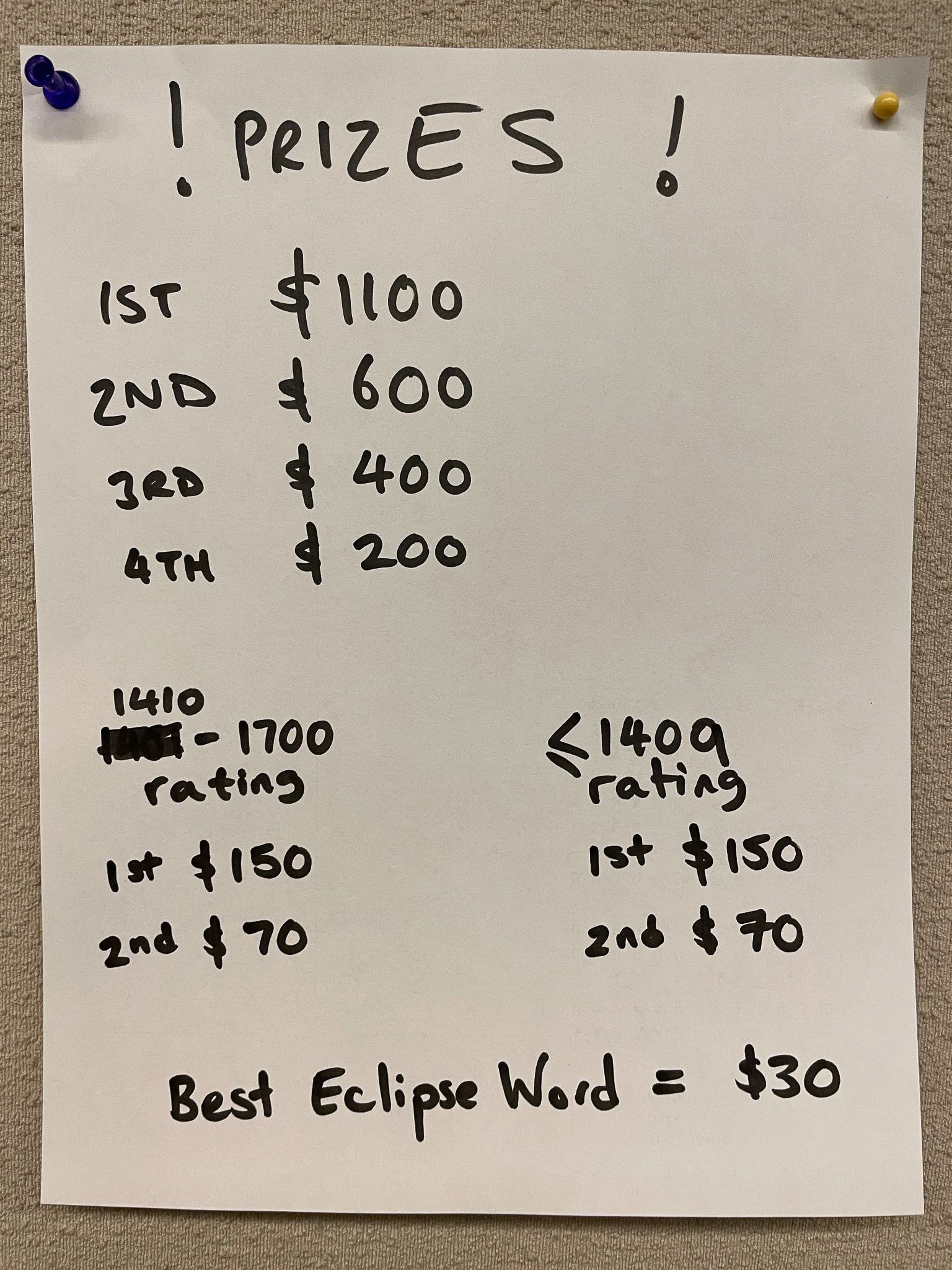 Trophy: $99.11 (donated by the director)