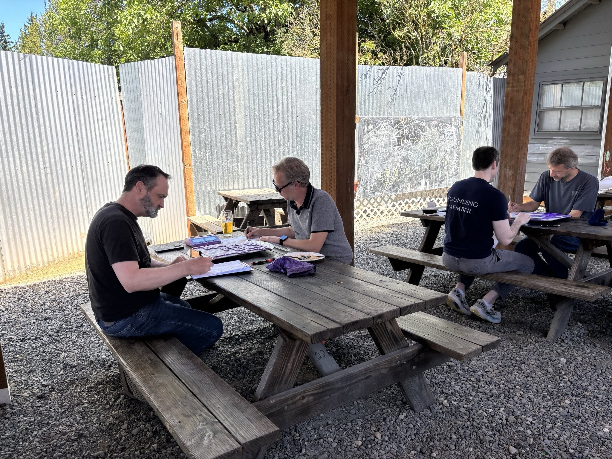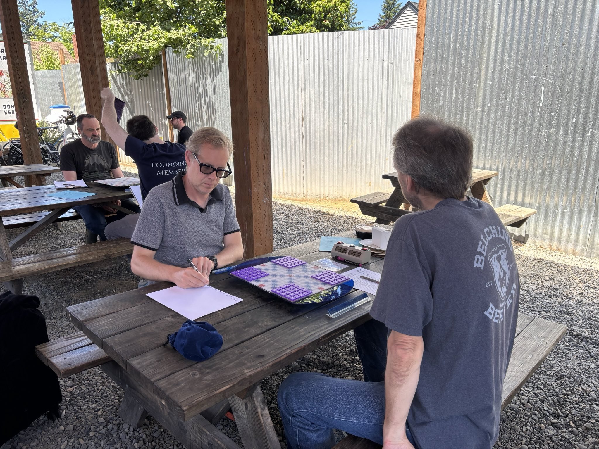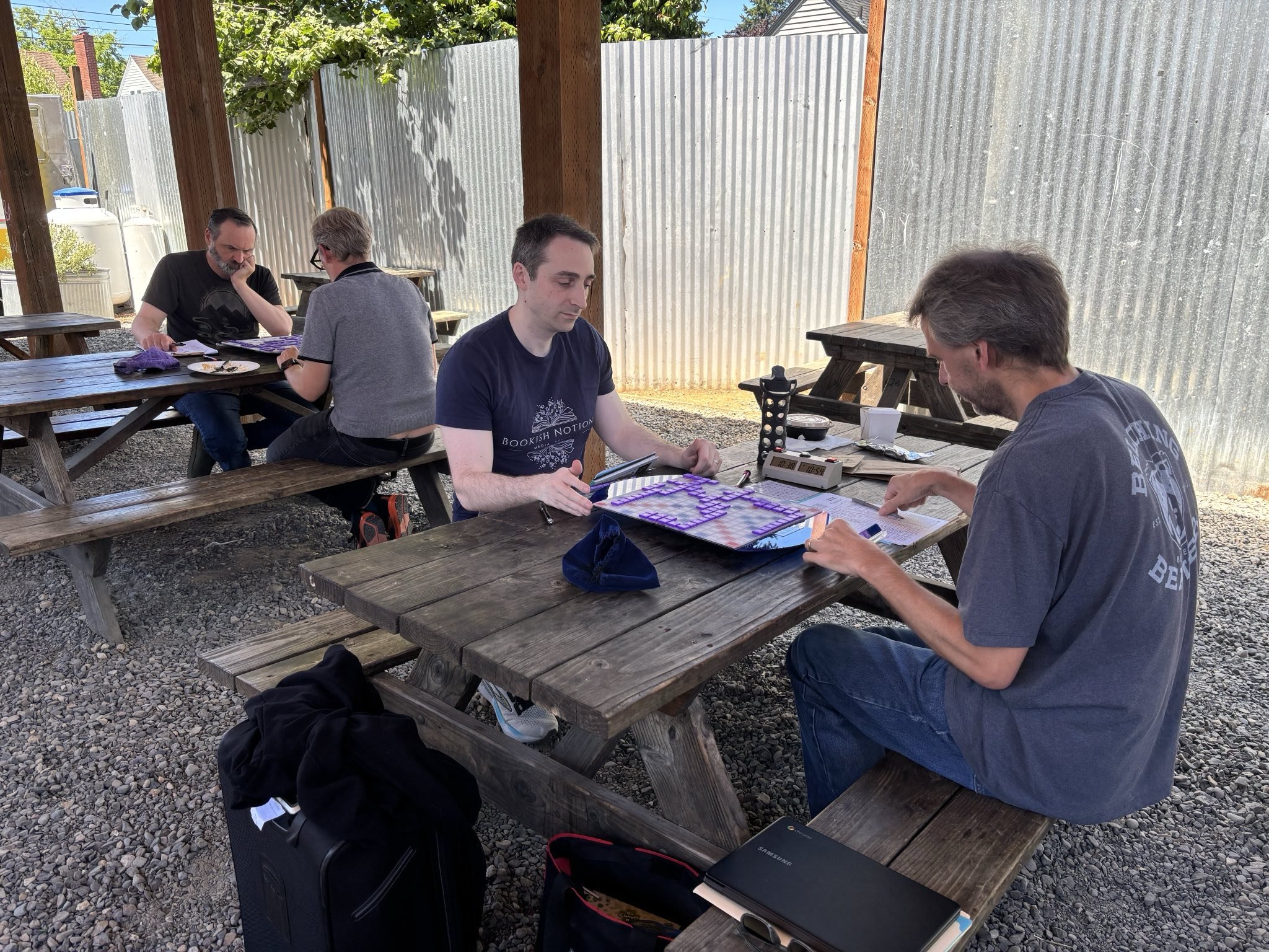 “Run by Dave Wiegand and Conrad BB, Portland Pub Scrabble is a one-day Scrabble tournament series at the best Scrabble city’s best breweries and pubs! For June, we were at the Barley Pod at Baerlic Beer Company. We sampled some high-caliber beers and ponderably good food carts!”
