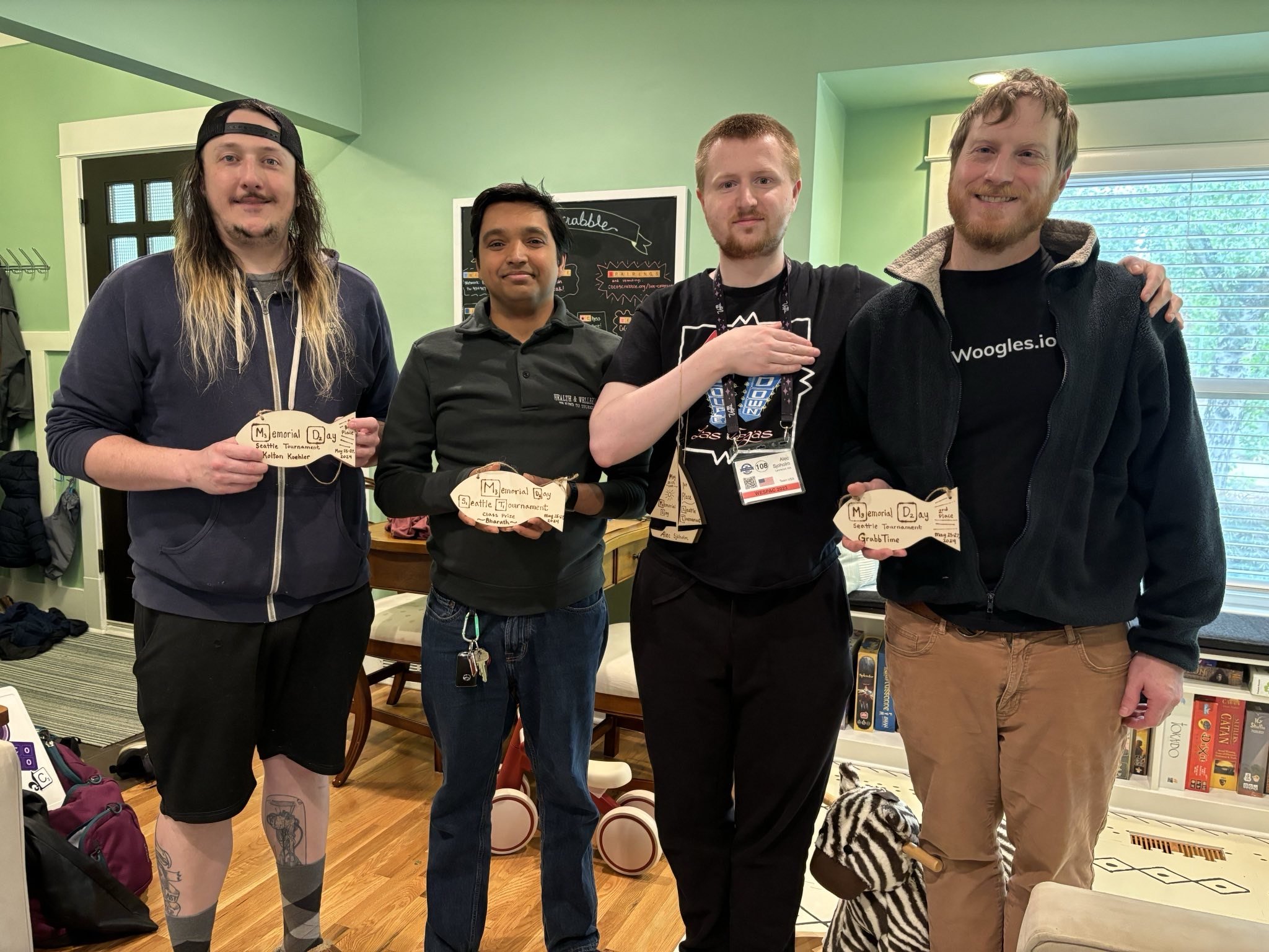 "Thanks to all who attended the Enjoyable Memorial Day At Seattle House (EMDASH). Congrats to Alec Sjöholm on a dominant performance, as well as Chris Grubb and Kolton Koehler for finishing second and third, and Bharath Balakrishnan for winning the class prize. And special props to John O'Laughlin, who won $1.03 for playing a 103-point bingo, the highest prime number scored in the tournament."