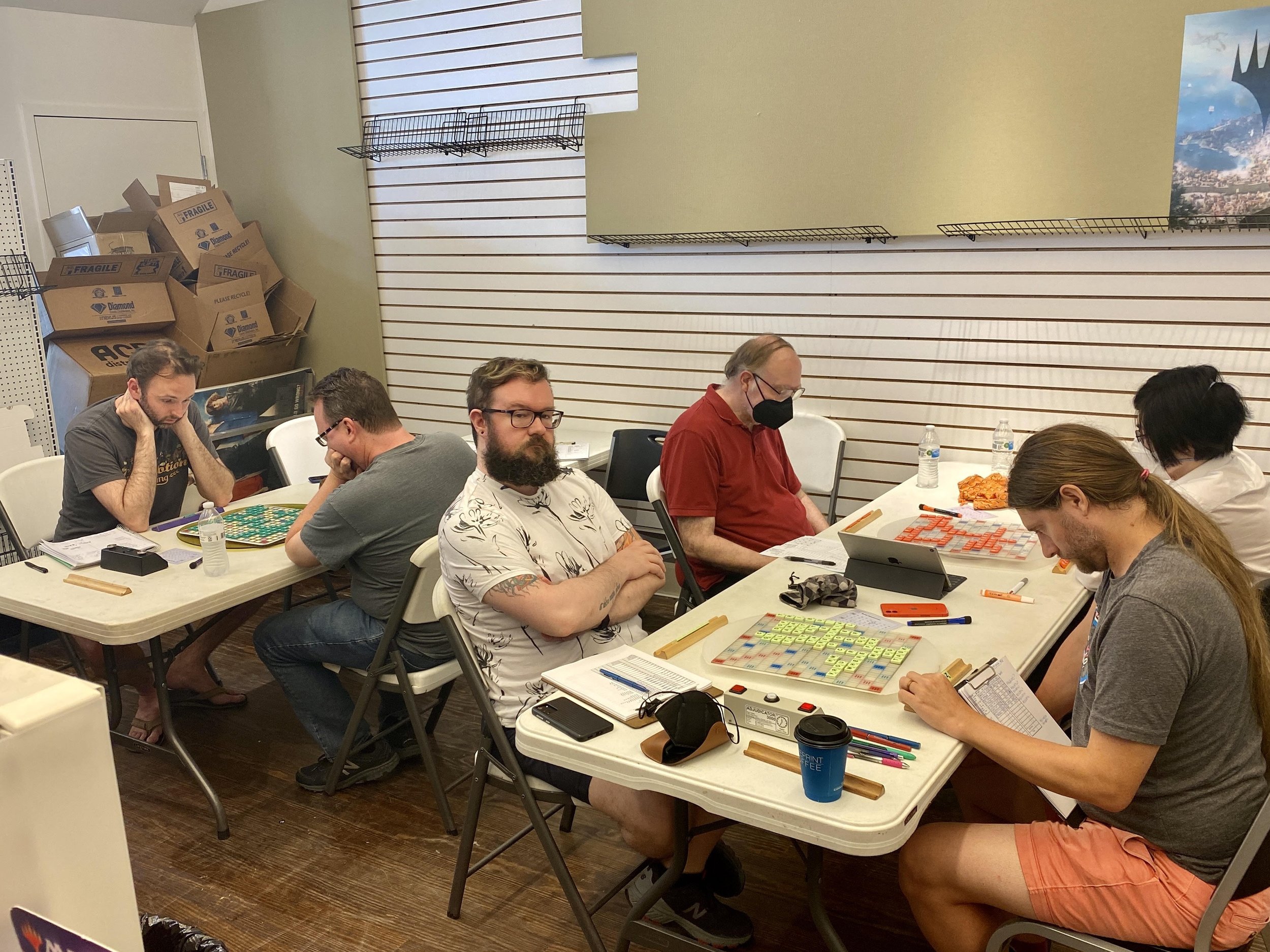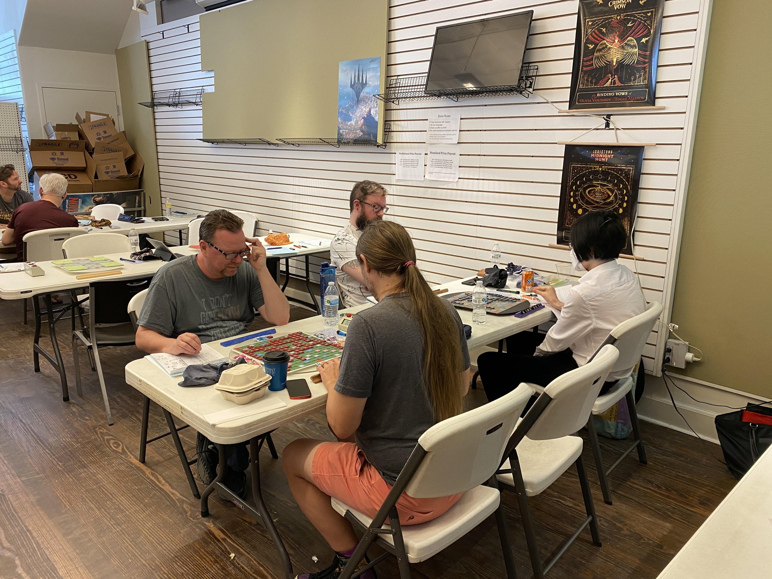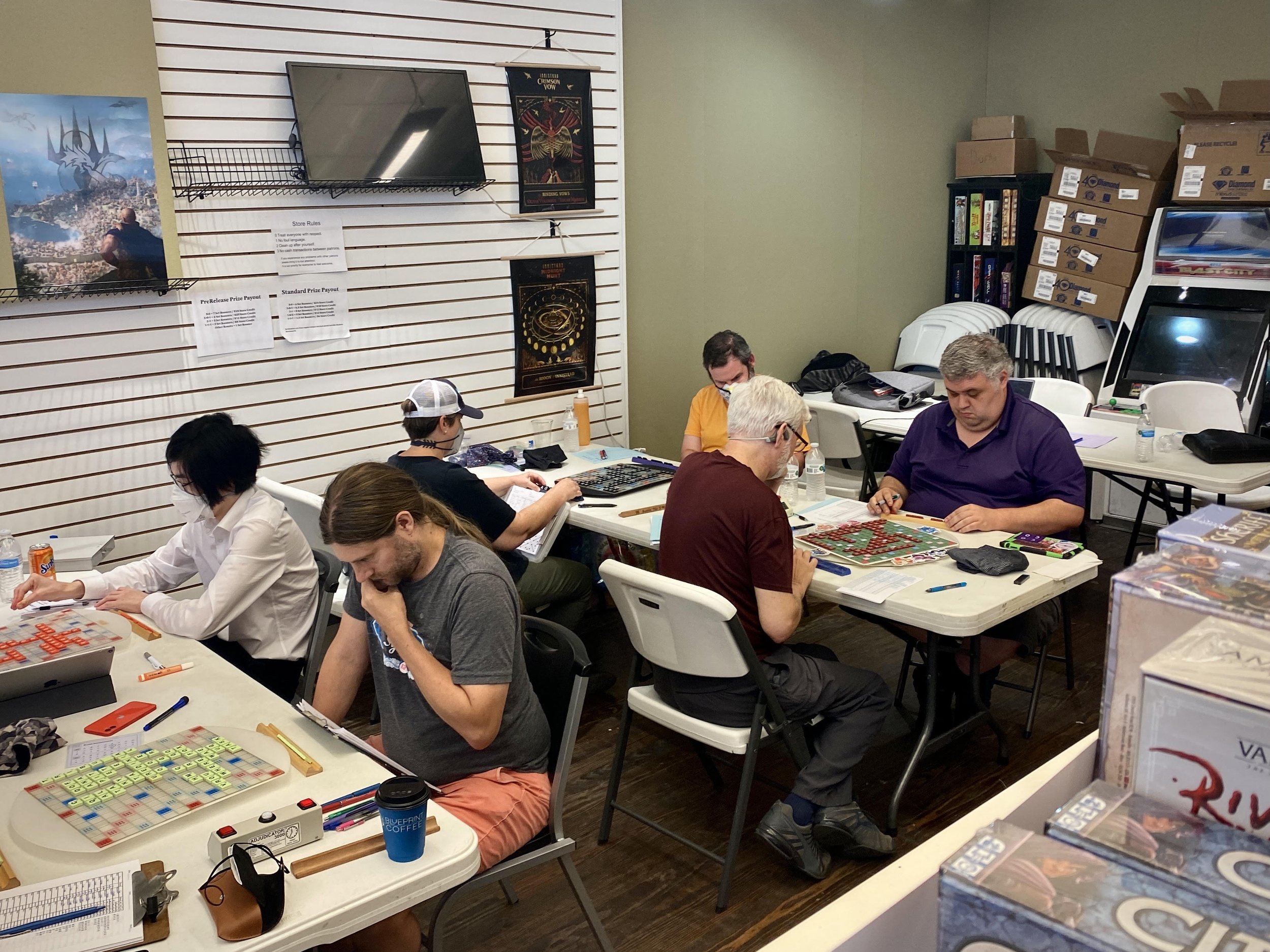 “Congratulations to Evans Clinchy on his first CoCo tournament victory, and to Rob Robinsky and Brian Bowman for finishing in second and third. Kudos to Becky Dyer for clinching the class prize. And thanks to Randi Goldberg for finding a cool game store as a venue for this tournament!”